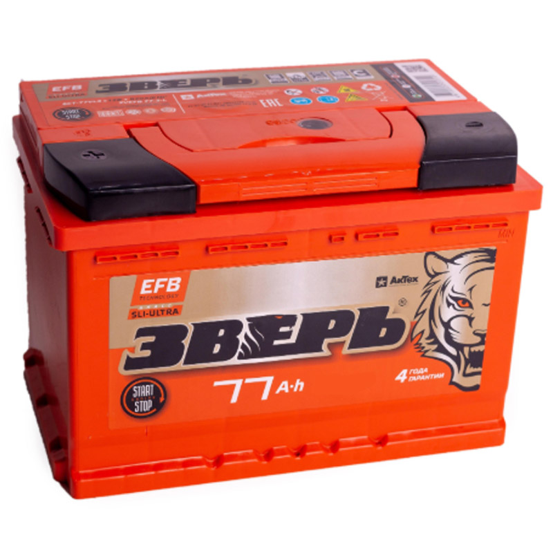 Купите аккумулятор АКБ Зверь EFB 77А/ч п.п. ток 780 278х175х190. Цена 8950 рублей. Также в каталоге 23 модели аккумуляторных батарей ЗВЕРЬ и аккумуляторы других производителей.