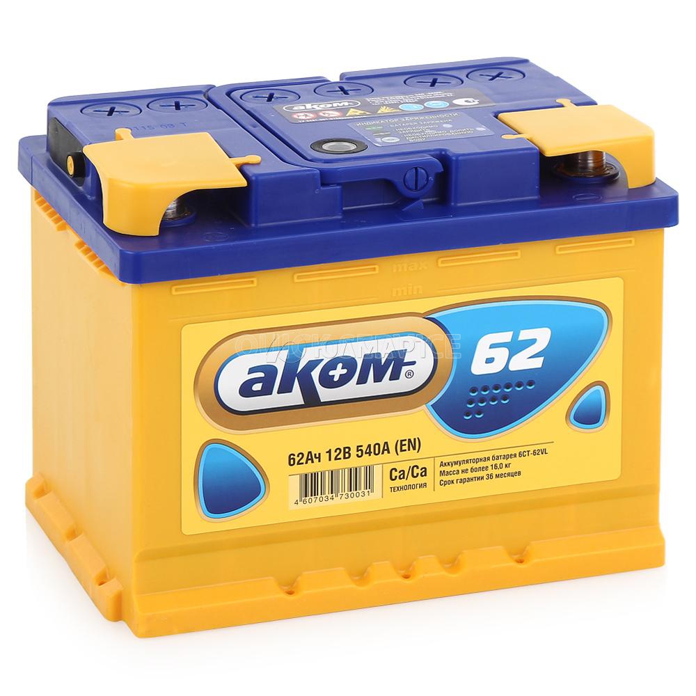 Купите аккумулятор Аком 62 Ач п.п.. Цена 0 рублей. Также в каталоге 65 моделей аккумуляторных батарей Аком и аккумуляторы других производителей.