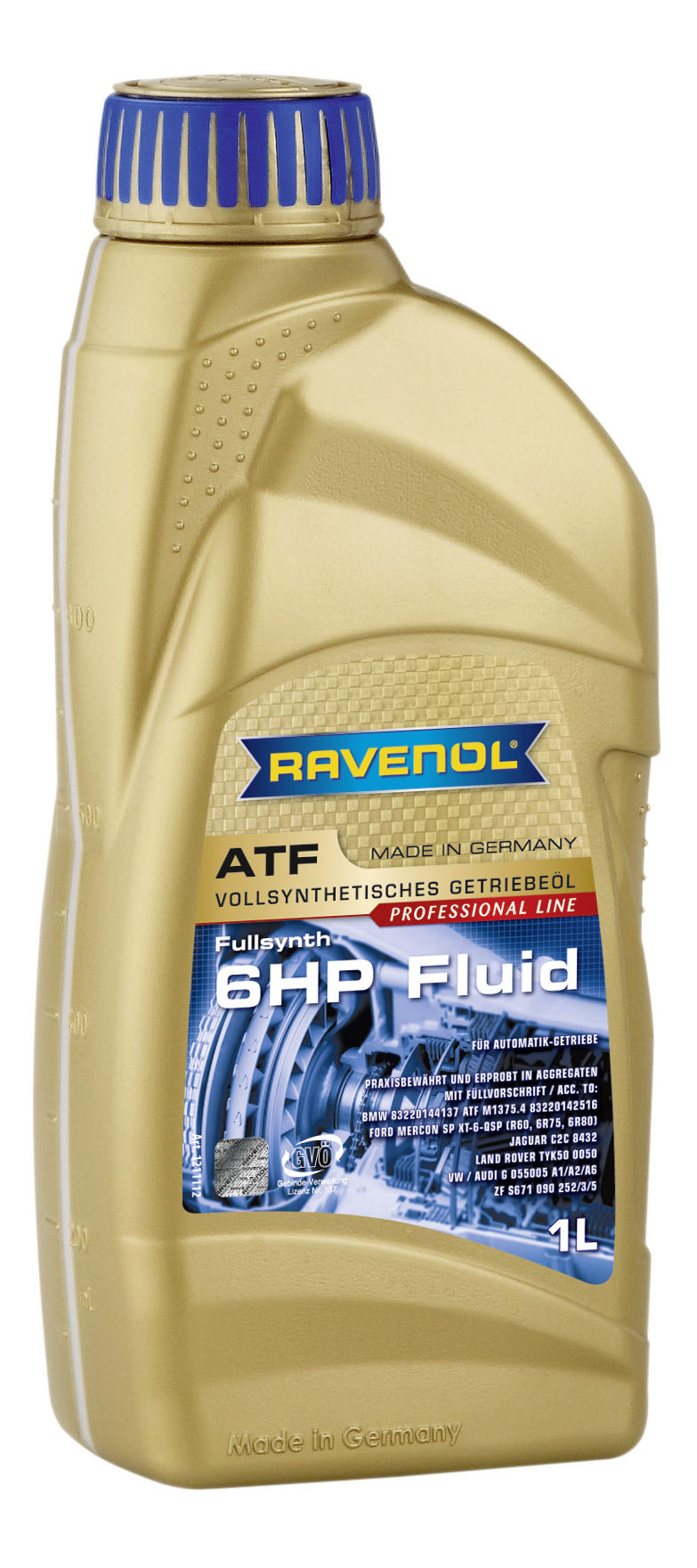 BMW 83220142516/83220144137 (ATF M1375.4 )/83222305396 (ATF2), Ford MERCON SP XT-6-QSP 6R60/MERCON SP XT-6-QSP 6R75/MERCON SP XT-6-QSP 6R80, Jaguar C2C 8432, Land Rover TYK 500050, VW/AUDI G 055005 A1/G 055005 A2/G 055005 A6, ZF S671 090 252/S671 090 253/S671 090 255