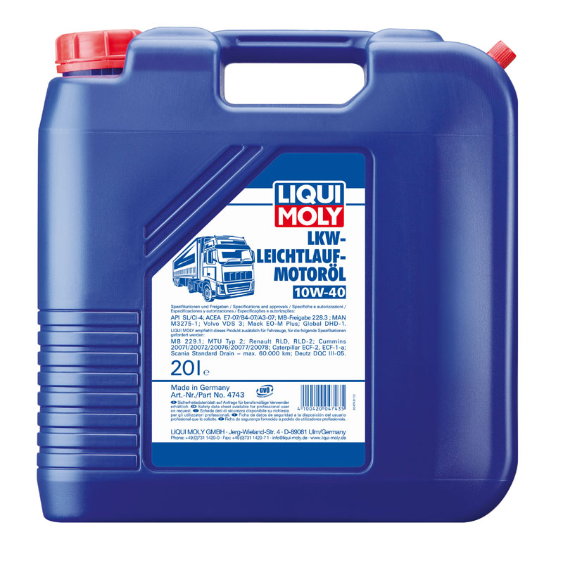 Купите синтетическое моторное масло LIQUI MOLY LKW-Leichtlauf-Motoroil 10W-40 SL/CI-4 А3/В3/E5/E7 20л цена 18728 рублей. В наличии моторные масла 10W-40 от производителей: Bardahl, Castrol, Elf, ENEOS, G-Energy, General Motors, HI-GEAR, Idemitsu, Kixx, LADA, Lavr, LiquiMoly, Lubex, LUXE, Mannol, Micking, Mirax, Mobil, Motul, Mozer, NGN, NISSAN, RAVENOL, RIXX, ROLF, ROWE, Shell, Sintec, Takayama, TOTACHI, Total, UAZ, Unix, Valesco, Well Run, Wezzer, Yamalube, ZIC, Газпромнефть, Лукойл, Роснефть. Также в наличии синтетические масла 10W-40, масла для универсальный (бензиновый и дизельныых типов двигателей.