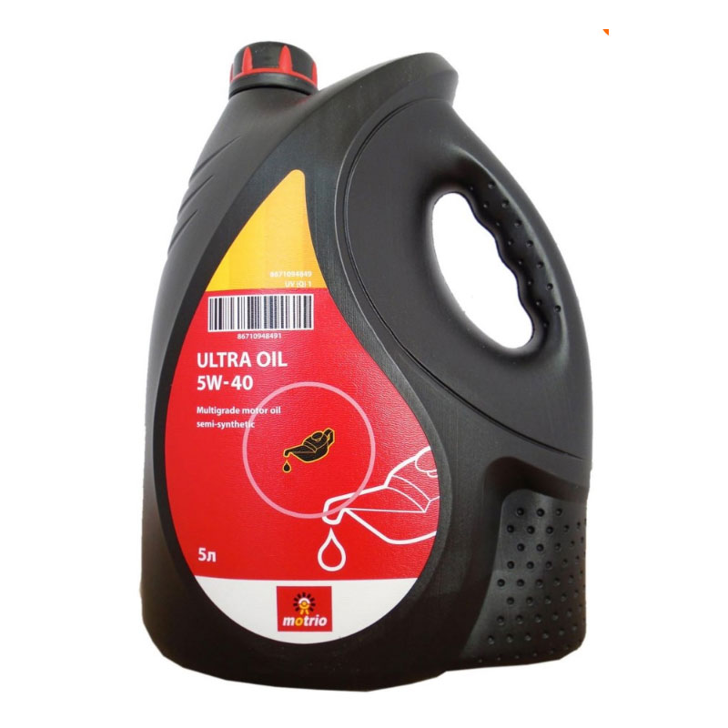 Купите синтетическое моторное масло Motrio Ultra 5W-40 5л цена 0 рублей. В наличии моторные масла 5W-40 от производителей: AUTOBACS, Bardahl, Elf, Ford, G-Energy, HI-GEAR, Idemitsu, Kixx, LADA, LiquiMoly, Mannol, Micking, Mirax, MITSUBISHI, Mobil, Motul, Mozer, Neste, NGN, NISSAN, RAVENOL, RIXX, ROLF, ROWE, Shell, Sintec, Takayama, TOTACHI, Total, TOYOTA, Unix, Valesco, Wezzer, ZIC, Газпромнефть, Лукойл, Роснефть. Также в наличии синтетические масла 5W-40, масла для универсальный (бензиновый и дизельныых типов двигателей.