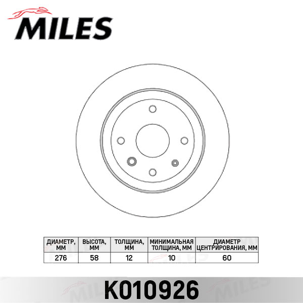 Технические характеристики товара «Диск тормозной задний MILES K010926 (TRW DF6360)»