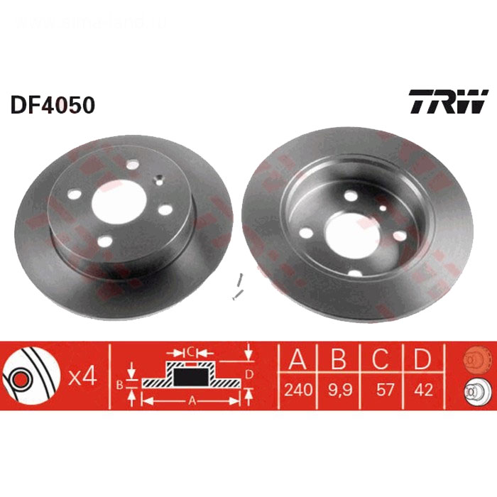 Технические характеристики товара «Диск тормозной задний TRW DF4050»