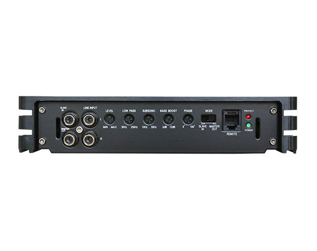 Ультракомпактный усилитель класса D. Стабильная работа при нагрузке 1 Ом; регулируемый subsonic (15 Гц – 50 Гц); мощные транзисторы Hexfet Mosfet; возможность плавной регулировки фазы; выносной регулятор баса с индикацией клиппа в комплекте; возможность использования двух усилителей одновременно в мостовом режиме.