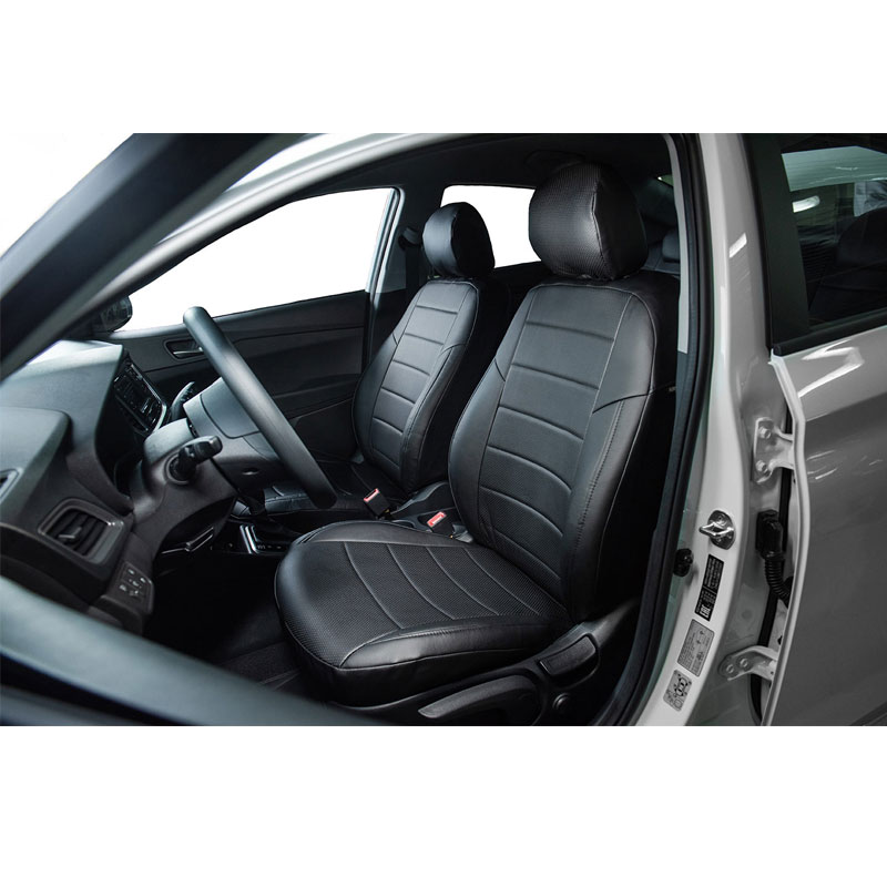 Презентабельный внешний вид. Чехлы, изготовленные из экокожи, выглядят элегантно и стильно. Благодаря чехлам салон автомобиля приобретает и респектабельный внешний вид.