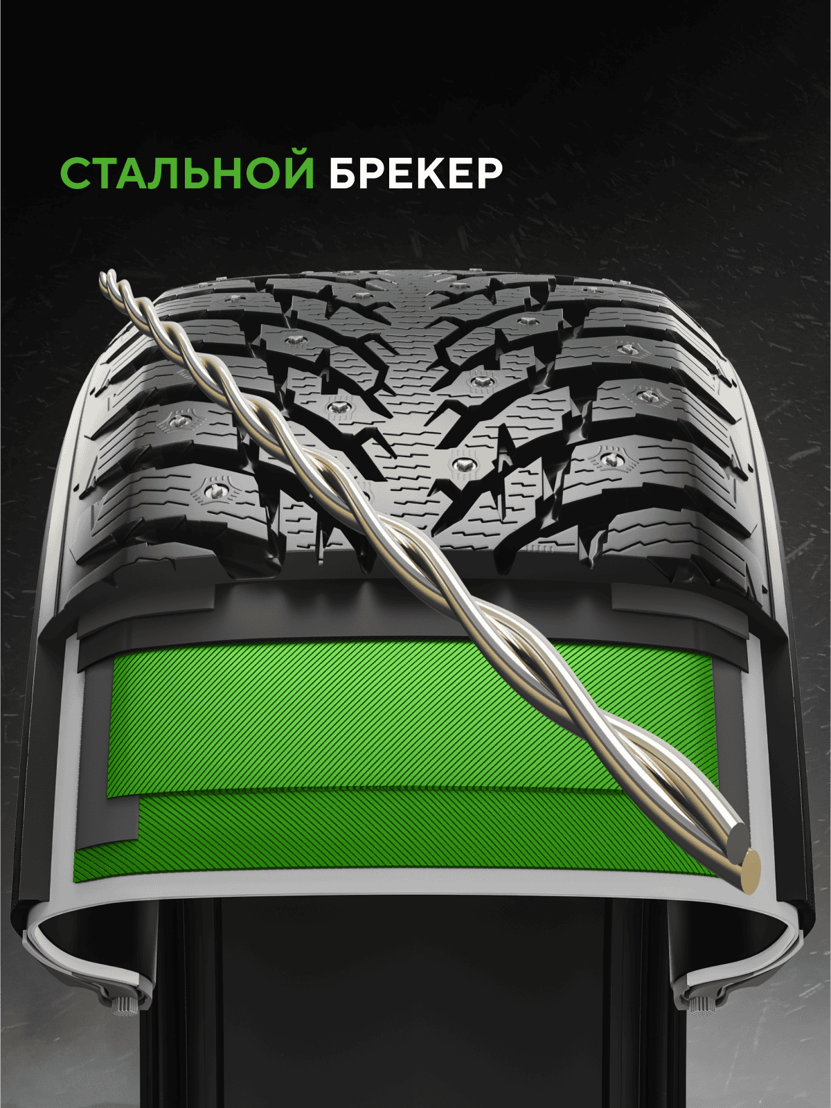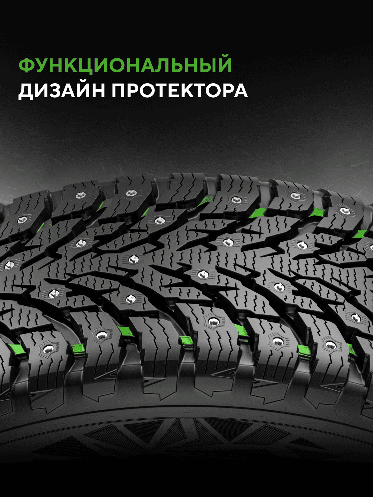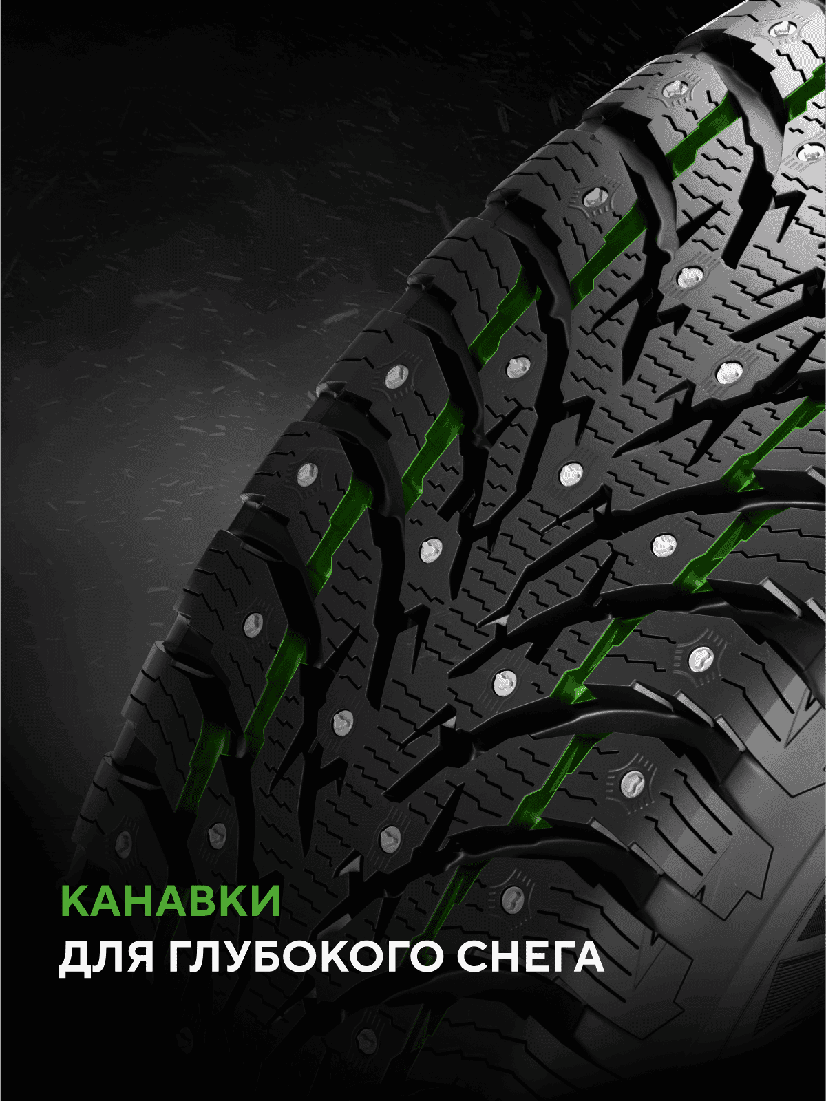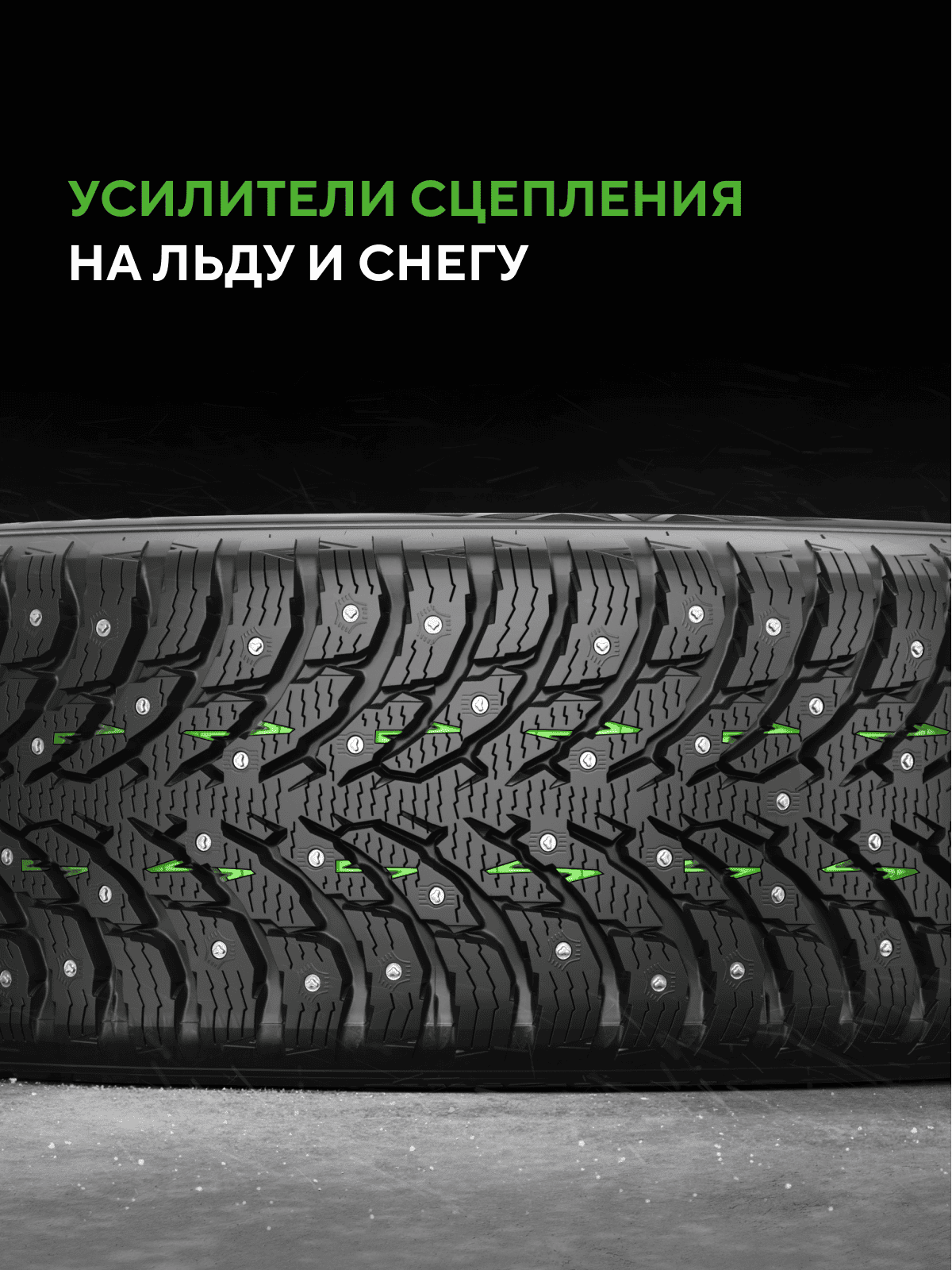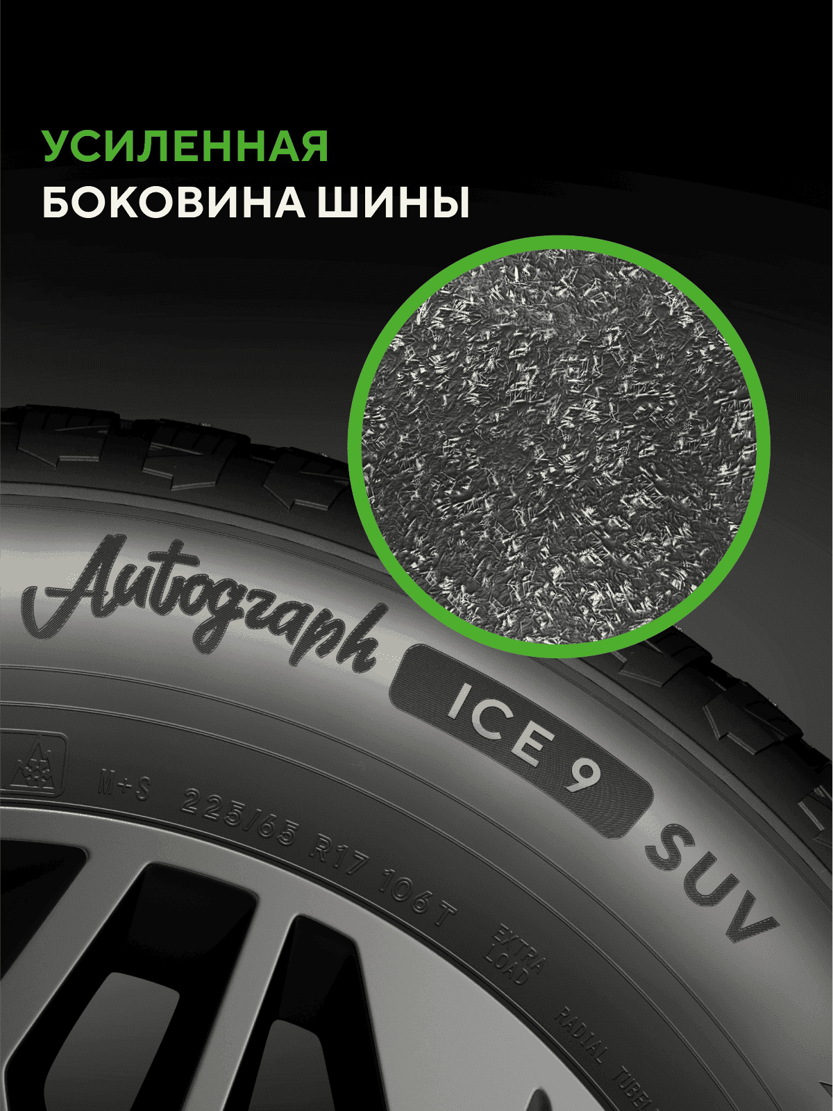 Шипованная шина для внедорожников Ikon Autograph Ice 9 SUV адаптируется к любым зимним условиям. Технология ошиповки двумя видами шипов обеспечивает усиленное продольное сцепление при ускорении и торможении, а также поперечное при поворотах. Один вид шипов разработан специально для центральной части протектора, а другой – для плечевых зон. Усиленные боковины обеспечивают исключительную износостойкость и устойчивость к разрыву при внешних ударах и наезде на препятствия.