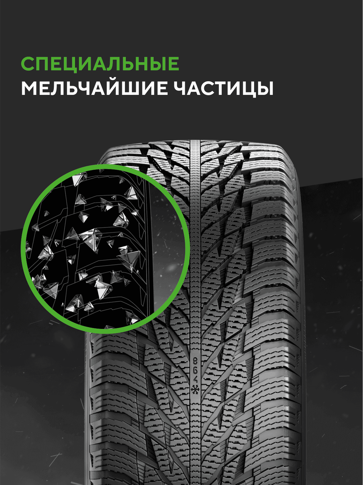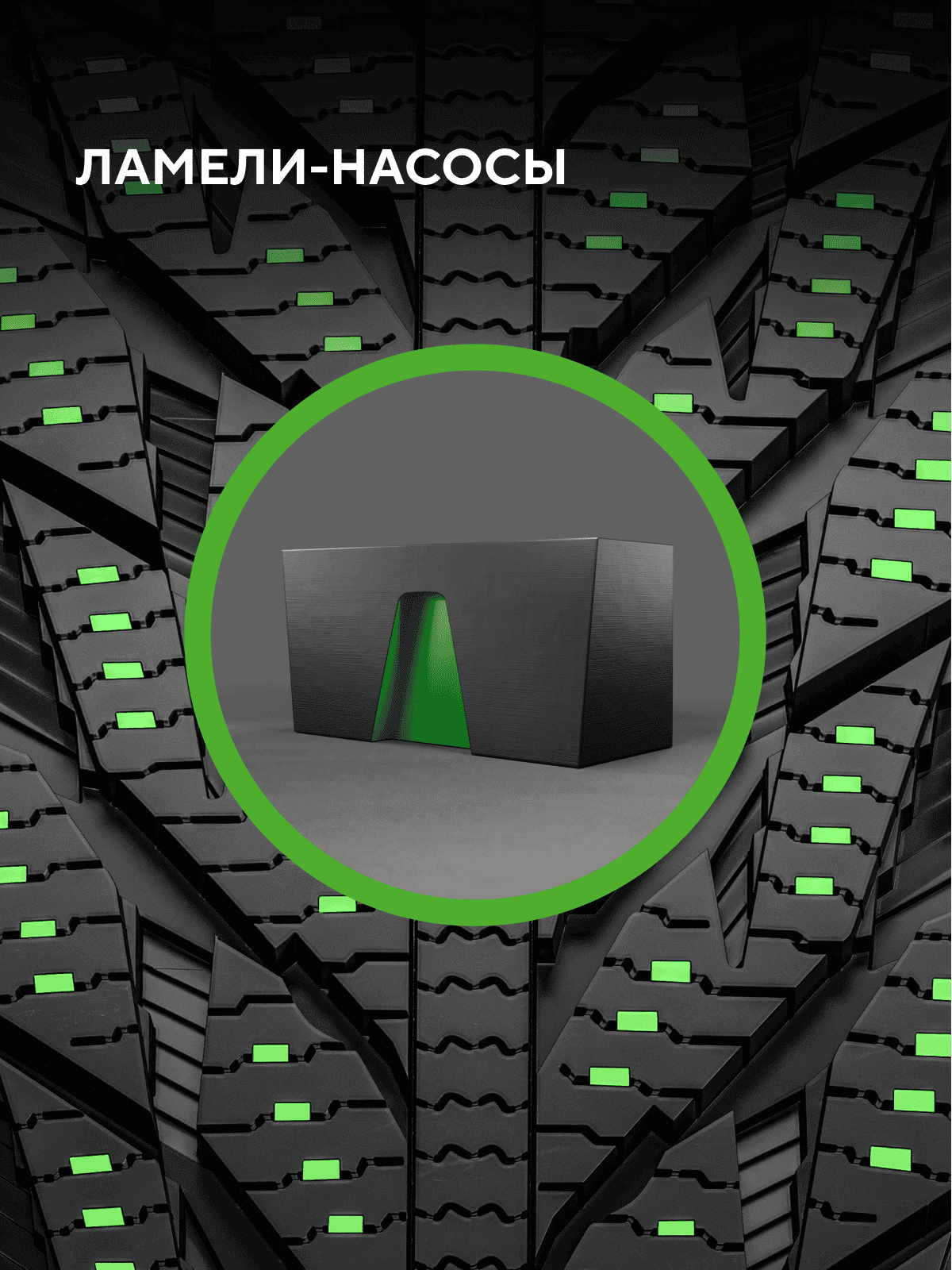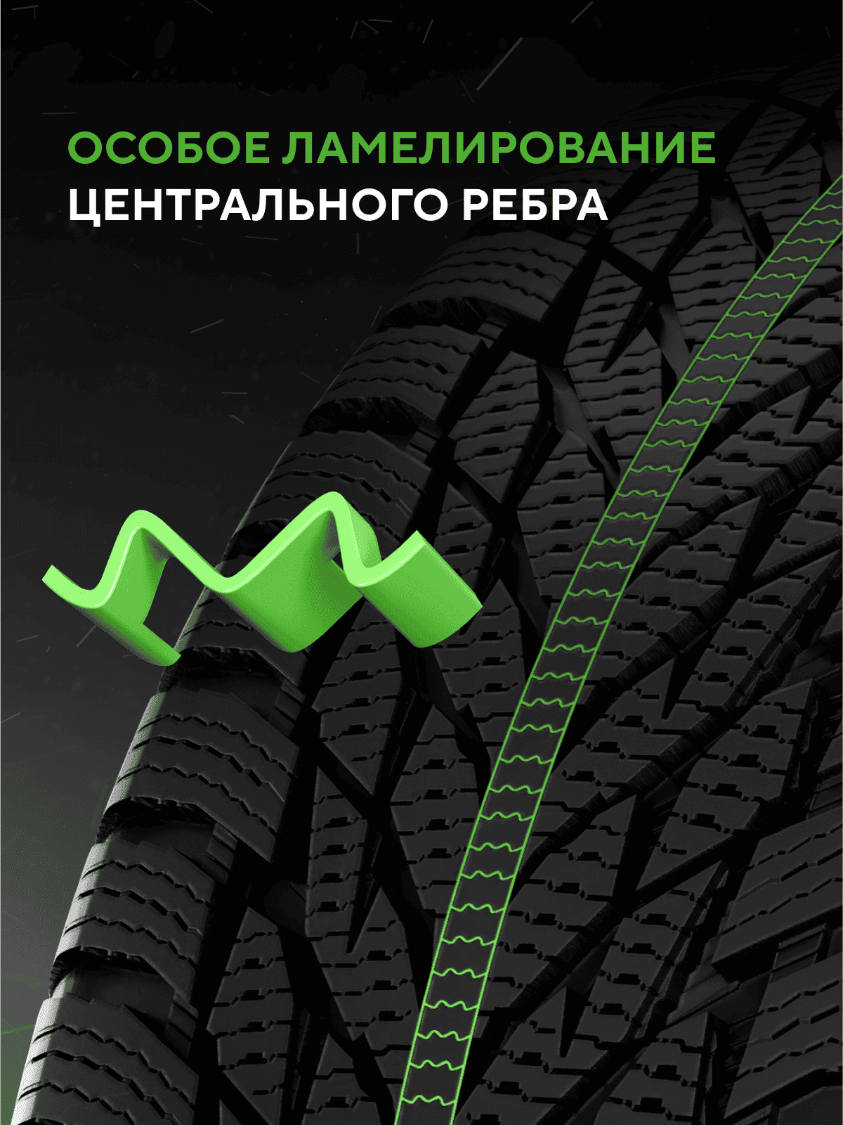 Направленный протекторный рисунок отличается V-образным расположением и многочисленностью канавок. Значительная их часть пересекается друг с другом, благодаря чему обеспечивается надежность управления как на мокром, так и на заснеженном покрытии. Еще одной особенностью является расположение блоков группами, за счет чего в пятне контакта образуются удлиненные изогнутые кромки. Это заметно повышает тяговые и тормозные свойства, особенно на снегу. На обледенелом покрытии они практически полностью сохраняются благодаря большому количеству ламелей. Узкие прорези при контакте с дорожной поверхностью образуют сотни заостренных граней, которые легко проникают сквозь пленку воды, позволяя шине в таких условиях сохранять устойчивое сцепление.